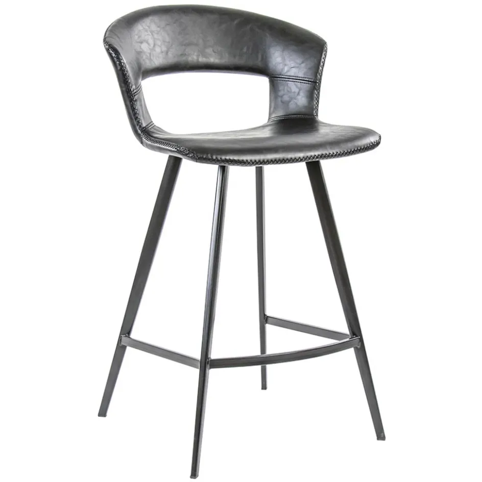 Retro barkruk zwart met imitatieleer>Straluma New