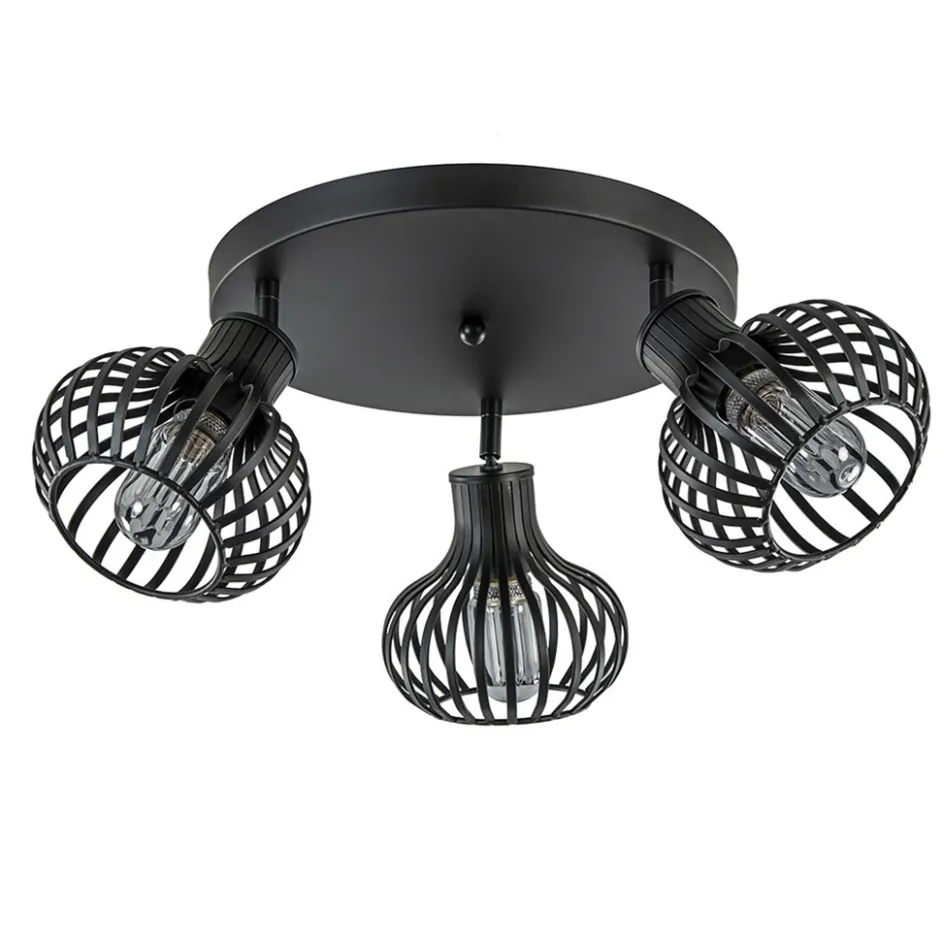 Perfect voor in de woonkamer, slaapkamer of hal. Deze ronde 3-lichts plafondlamp is volledig gemaakt van metaal en afgewerkt met een mat zwarte finish. Het matte zwart zorgt dat de lamp perfect past in een Scandinavisch of modern interieur. De plafondlamp is voorzien van drie draadkapjes in de vorm van een ui. De kapjes hebben wat bredere speilen die de moderne uitstraling versterkt. De ronde kapjes zijn los van elkaar te verstellen door deze te draaien en te kantelen. De kapjes van deze Scandinavische plafondlamp zijn maar klein maar zorgen door de open structuur dat er genoeg licht kan worden verspreid. De lichtbronnen zijn exclusief (3x E27).