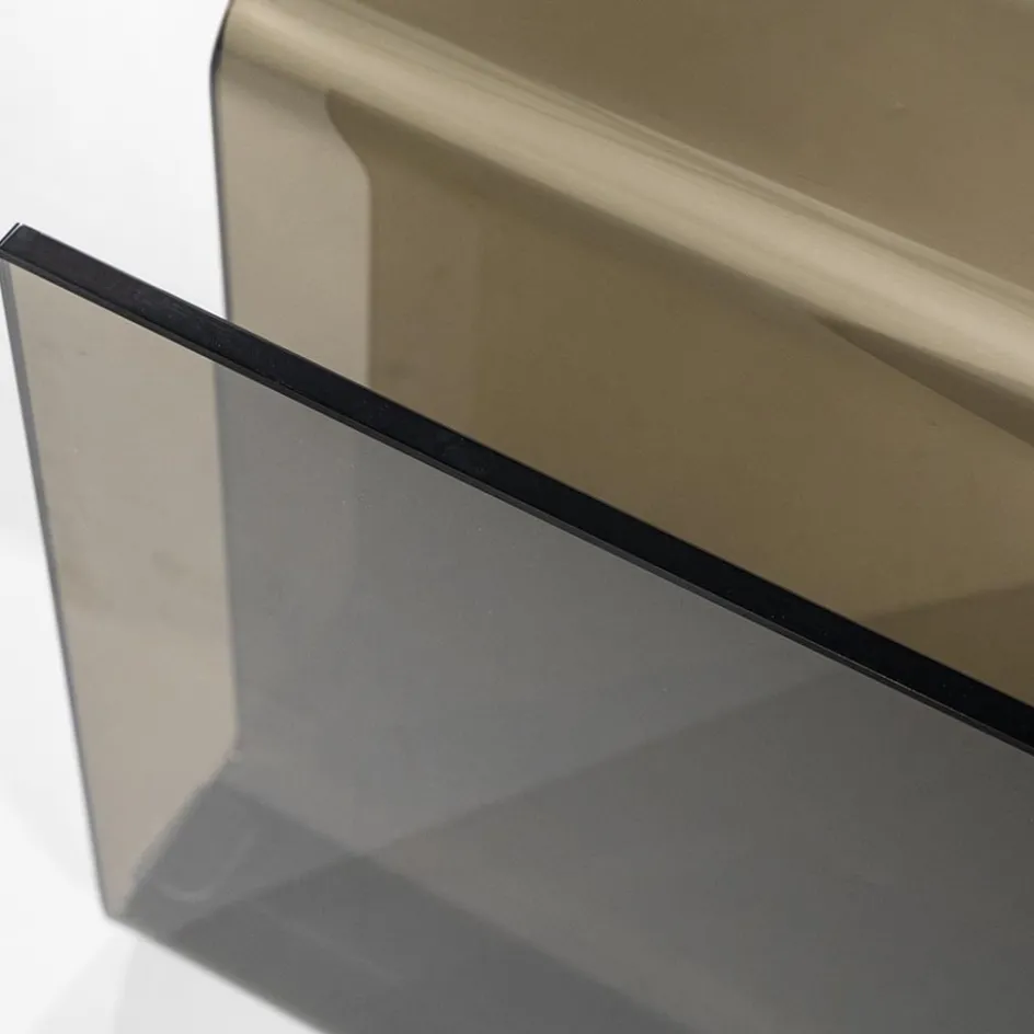 Mooie trendy glazen salontafel van By-Boo. De serie Shadow is leverbaar in grijs glas en bruin glas. Er is ook een bijzettafel leverbaar