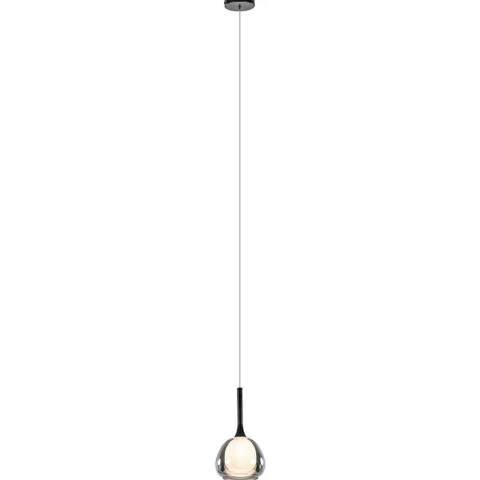 Een mooie sfeervolle hanglamp met een dubbele laag. De moderne hanglamp is voorzien van een smoke glazen kap die met zijn titanium look een mooi spiegelend effect heeft wanneer de lamp is uitgeschakeld. Schakelt u de lamp in, dan komt er een wit binnenglas tevoorschijn die zorgt dat het licht mooi diffuus wordt verspreid. Het mat witte binnenglas zorgt er tevens voor dat u niet direct in de lichtbron kijkt. Het smoke glas wordt donker transparant wanneer de lamp is ingeschakeld en zorgt zo voor een luxe uitstraling. Het glas is bevestigd op een zwart metalen armatuur die hangt aan een dun en soepel staaldraad. De glazen hanglamp wordt met een ronde bevestiging aan het plafond opgehangen. De smoke glazen hanglamp met zwart past mooi in diverse woonstijlen als modern of strak klassiek.