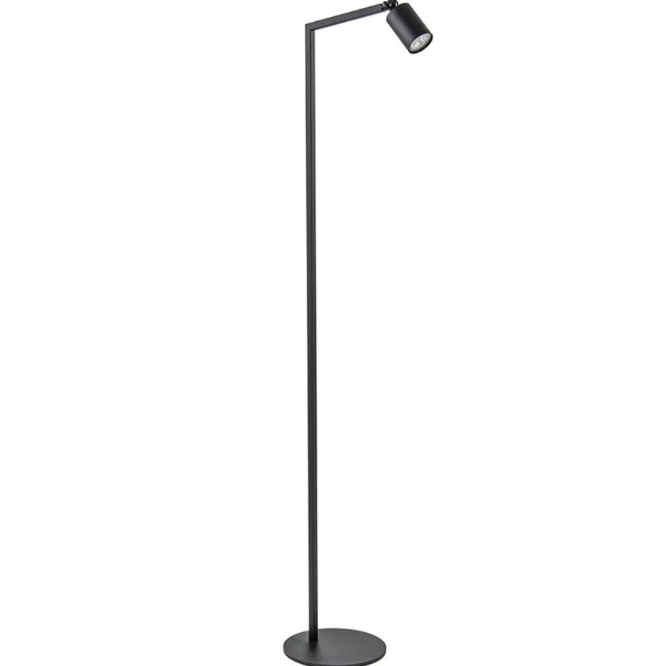 Een mooie design vloerlamp met een strakke vormgeving. De moderne vloerlamp, tevens leeslamp, heeft een mat zwart armatuur die wordt ondersteund door een ronde voet van 22 cm doorsnede. De leeslamp is voorzien van een zwarte spot die naar wens is te stellen. Door het knopje bij de kap los te draaien kunt u de kap kantelen zodat deze uw favoriete leesplek goed verlicht. De moderne vloerlamp wordt geleverd met een zwart snoer van 230 cm, met een voetschakelaar op 40 cm van de lamp. De lichtbron is exclusief (GU10).