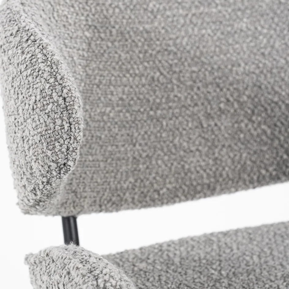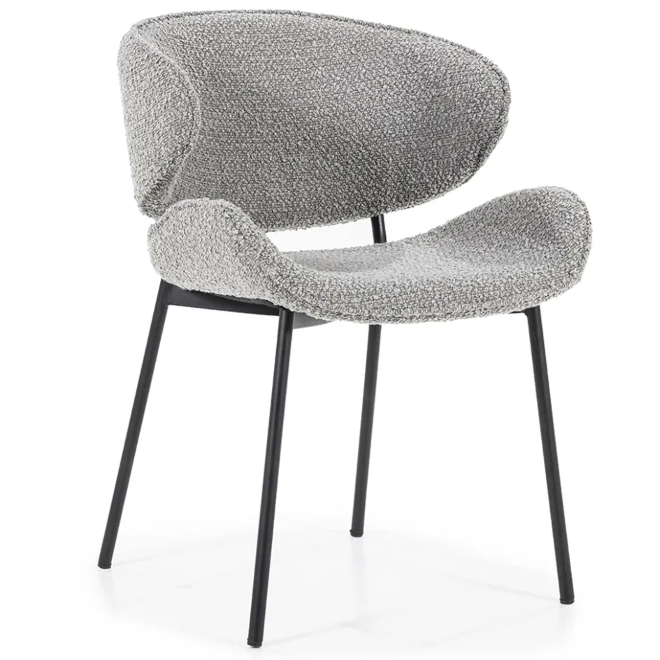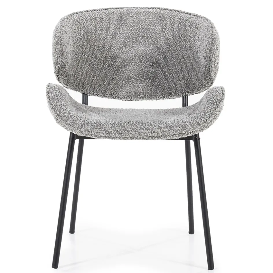 Trendy eetkamerstoel met een brede zitting. De ronde vormen van de stoel zorgt voor extra zitcomfort. Het frame van de stoel is van metaal met een mat zwarte afwerking. Deze stoel komt in 4 kleuren.