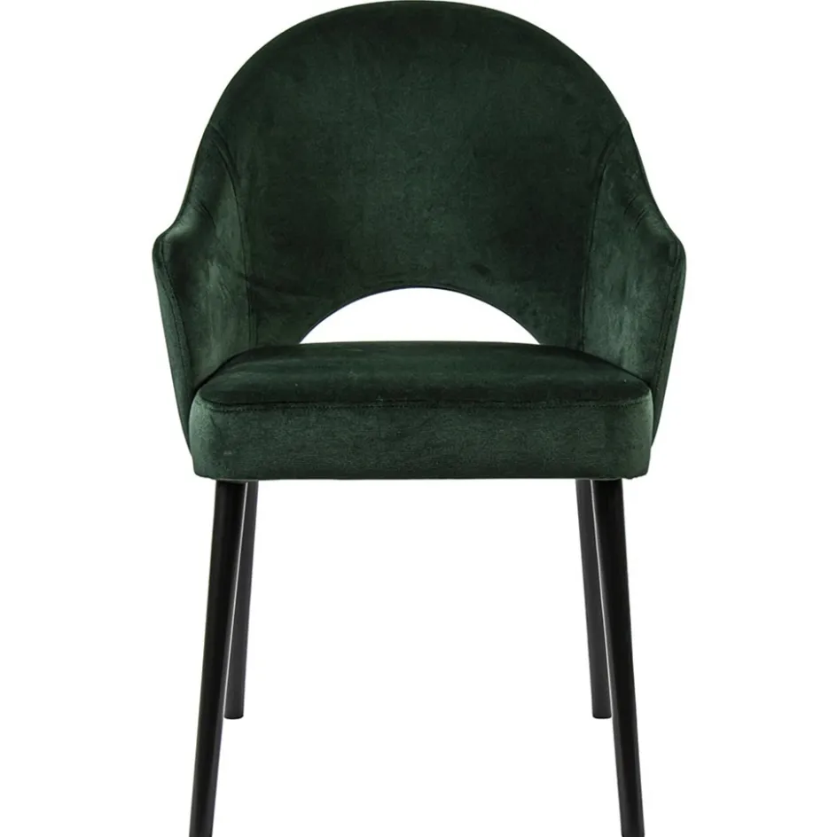 Stoffen eetkamerstoel velours groen met zwarte houten poot>Straluma