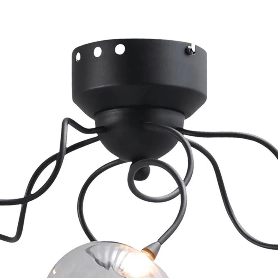 Klassiek, retro en modern inéén. Deze 5-lichts plafondlamp is in diverse woonstijlen toe te passen. De plafondlamp heeft een metalen armatuur met een zwarte afwerking en is gecombineerd met helder glazen bollen. In de bollen zit LED verlichting verwerkt welke middels een externe dimmer ook dimbaar is. De gekrulde armen geven de LED plafondlamp een sierlijke speelse look en de verlichting geeft met 2700 Kelvin warm wit licht. Door de dim to warm functie wordt deze tijdens het dimmer niet alleen minder in intensiteit, maar ook warmer van kleur. Een mooie toevoeging voor een woonkamer, slaapkamer of hal.