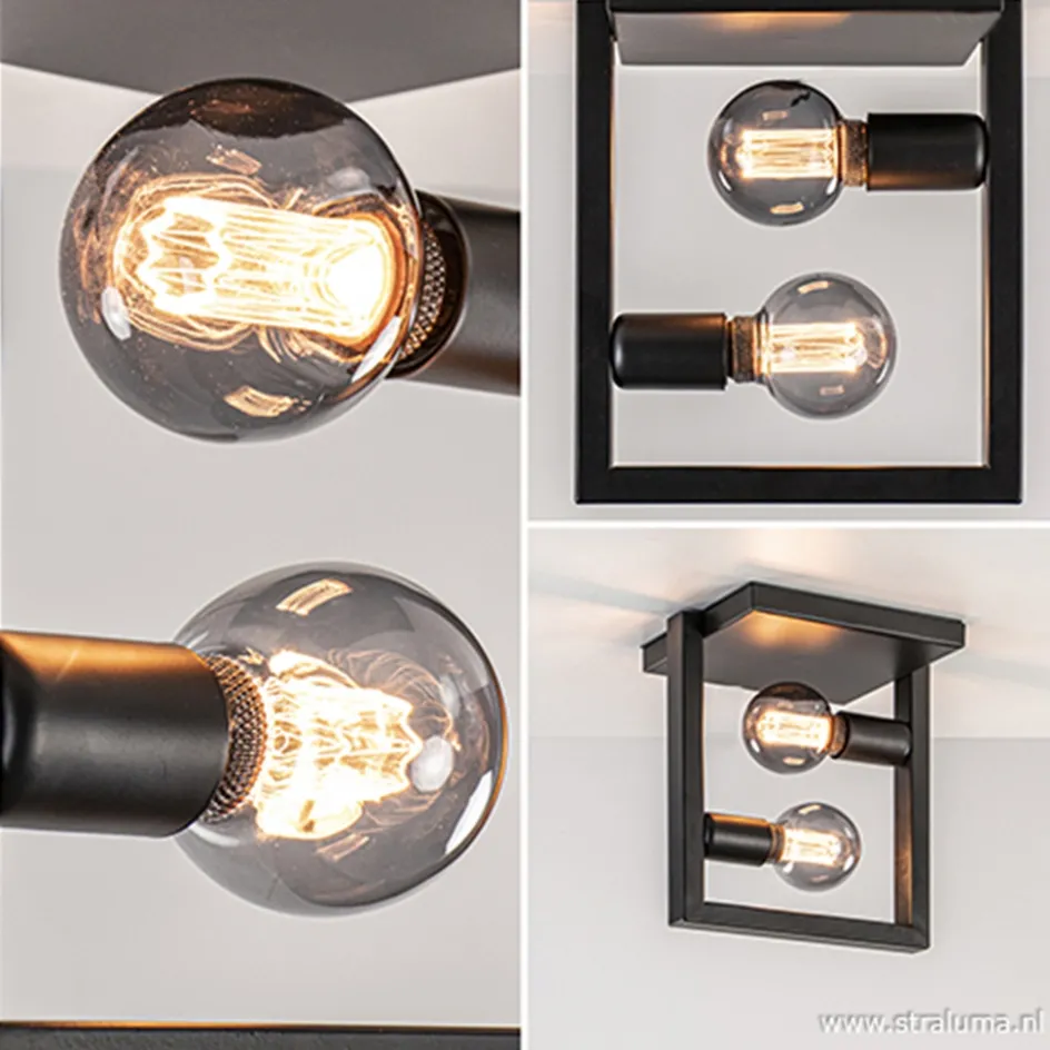 Strakke zwarte plafonnière metaal Frame>Straluma