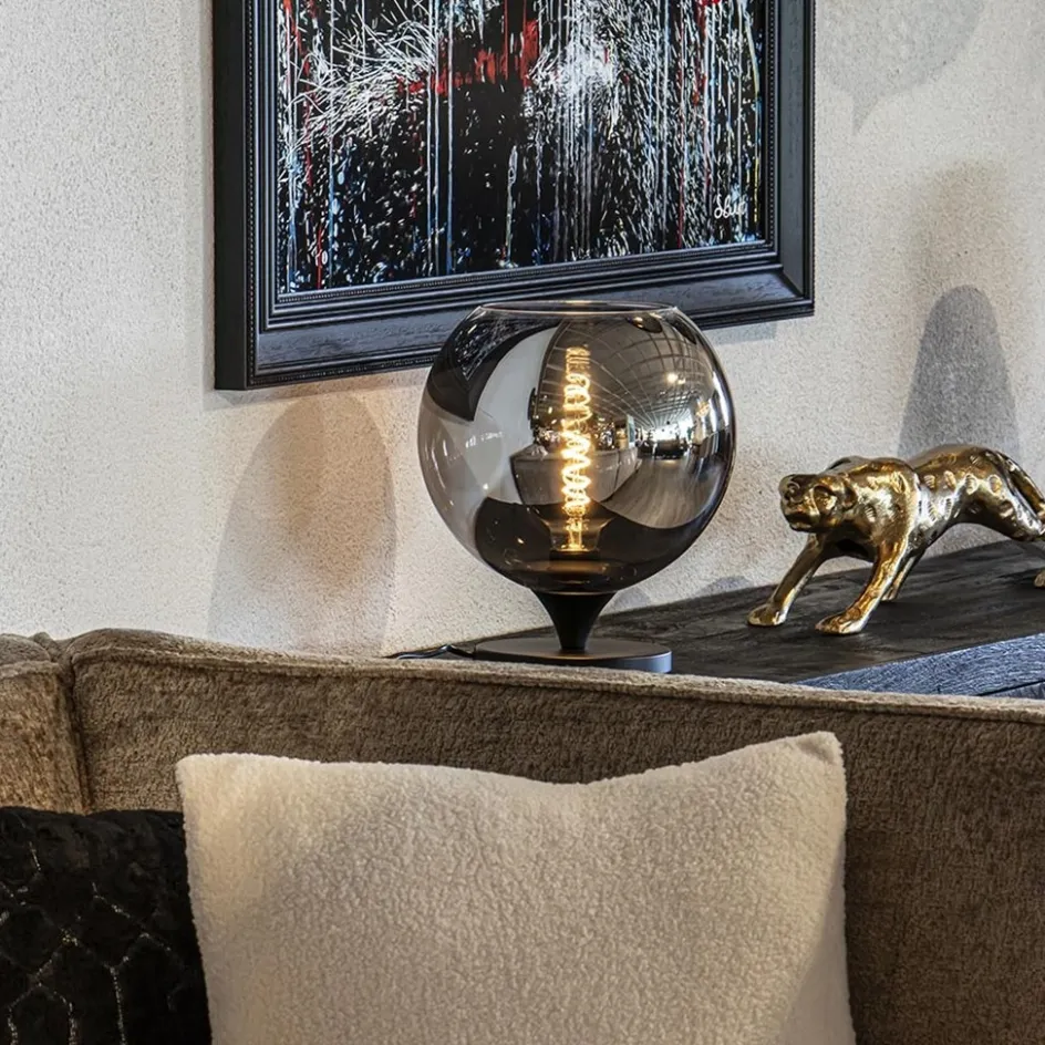 Deze tafellamp combineert stoerheid, elegantie en luxe op een perfecte manier. Het mat zwarte voetje geeft de lamp een robuuste uitstraling, terwijl het smoke glas zorgt voor een warm en sfeervol licht. Met zijn verfijnde ontwerp voegt deze lamp een vleugje elegantie toe aan elke ruimte. Of het nu op je bureau, nachtkastje of bijzettafel staat, deze tafellamp zal zeker de aandacht trekken. Geniet van de luxueuze uitstraling en het gezellige licht dat deze lamp verspreidt. Het mat zwarte voetje in combinatie met het smoke glas creëert een uniek en stijlvol effect. Voeg een warme en toch stoere touch toe aan je interieur met deze prachtige tafellamp. Deze tafellamp wordt met een snoer geleverd van 180 cm waarbij de schakelaar zich op 40 van het armatuur bevindt. Deze tafellamp komt in verschillende formaten en in twee kleuren.