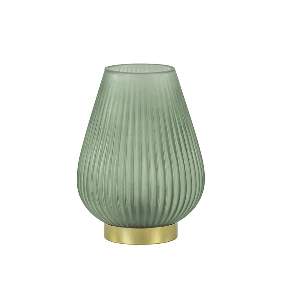 Tafellamp Tajera van Light en Living in een donker groene kleur. Het glas is mat, dit geeft de tafellamp een stoere uitstraling. Deze leuke tafellamp heeft een goudkleurig voetje. Dat in combinatie met het druppelvormige ontwerp van het glas geeft de lamp een sierlijke uitstraling. De lamp werkt op batterijen en hierdoor kan deze overal in huis worden neergezet.