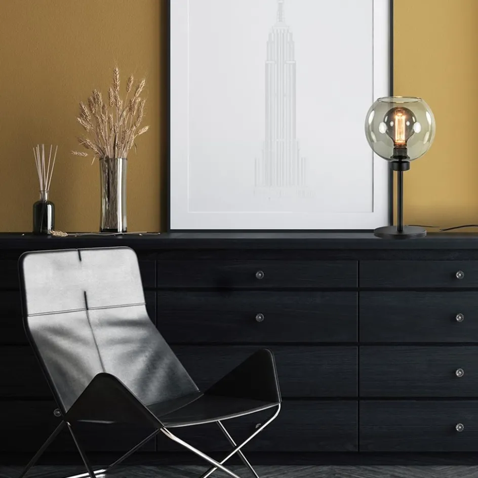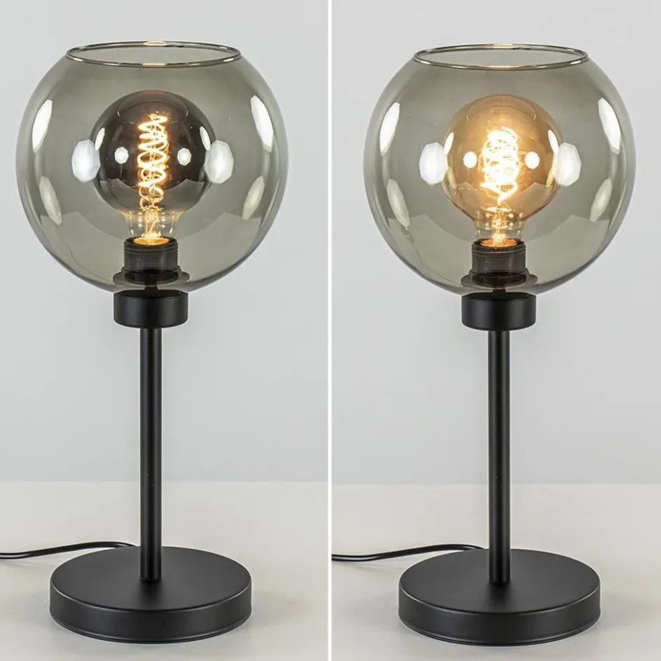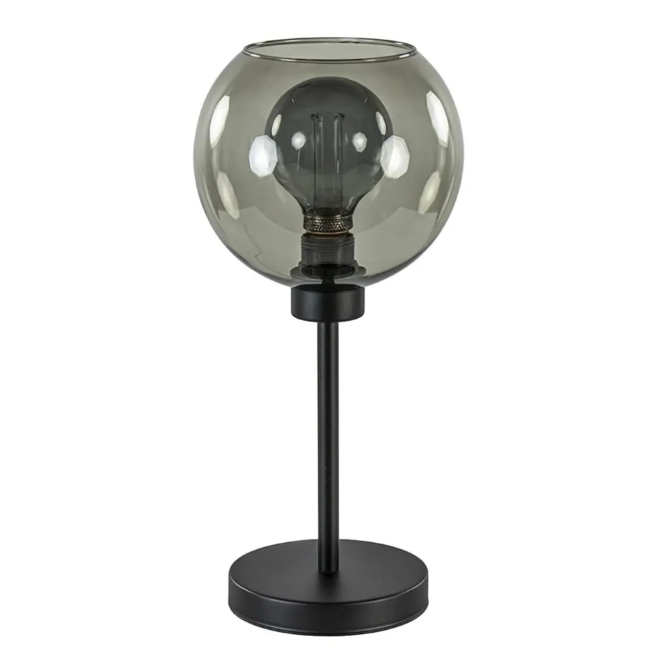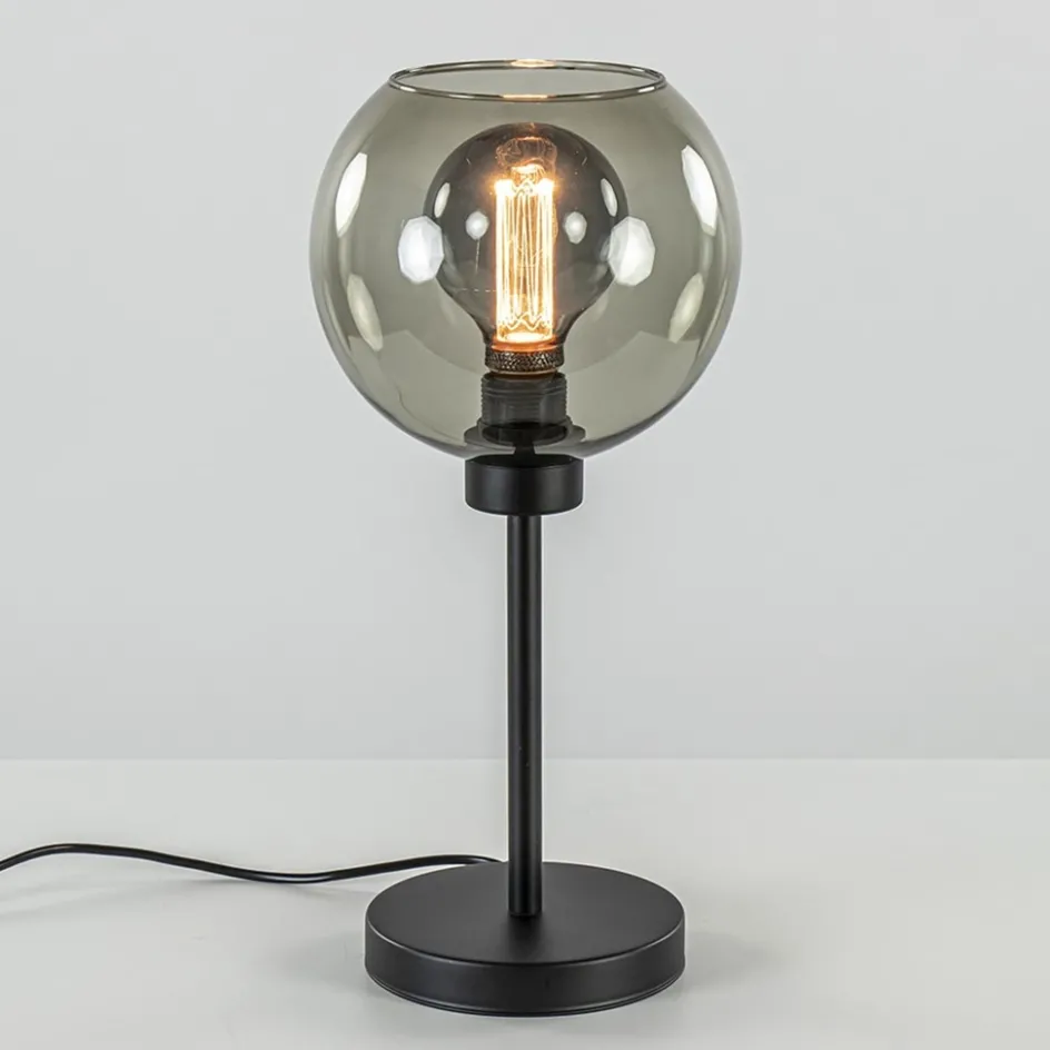 Tafellamp zwart met smoke glazen bol>Straluma Hot
