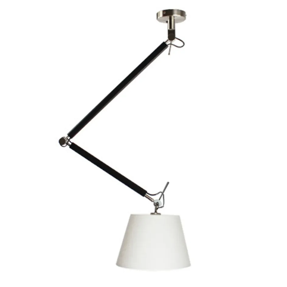 Super praktische hanglamp/plafondlamp met verstelbare arm, hierdoor kunt u deze lamp naar wens verstellen. Mooi design met zwart en staal gecombineerd, dit geeft het geheel een mooie strakke uitstraling. De kap zorgt voor sfeer en een zacht tintje. Deze verstelbare plafondlamp is bij de kap en plafondbevestiging draaibaar en kantelbaar, tussen de stangen zit ook een scharnier. Door deze mogelijkheden is de lamp in allerlei houdingen in te stellen. Ideaal voor boven de eettafel.