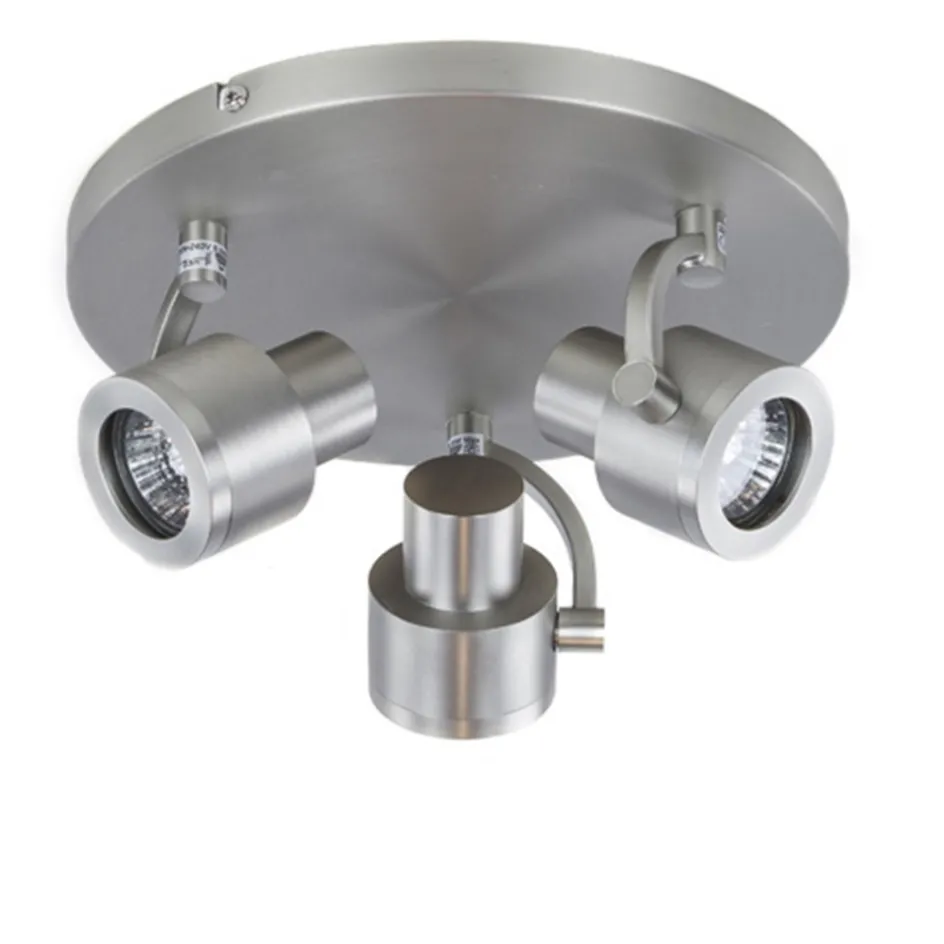 Moderne plafondspot uitgevoerd in mat staal. Deze plafonnière komt uit de serie ‘Alto’, een mooie strakke serie opbouwspots in diverse uitvoeringen. De moderne spots zijn draaibaar en kantelbaar. Ideaal voor het uitlichten van een donkere hoek of lijst aan de muur. Door de stalen uitvoering is deze 3-lichts spot uitstekend voor een modern interieur.