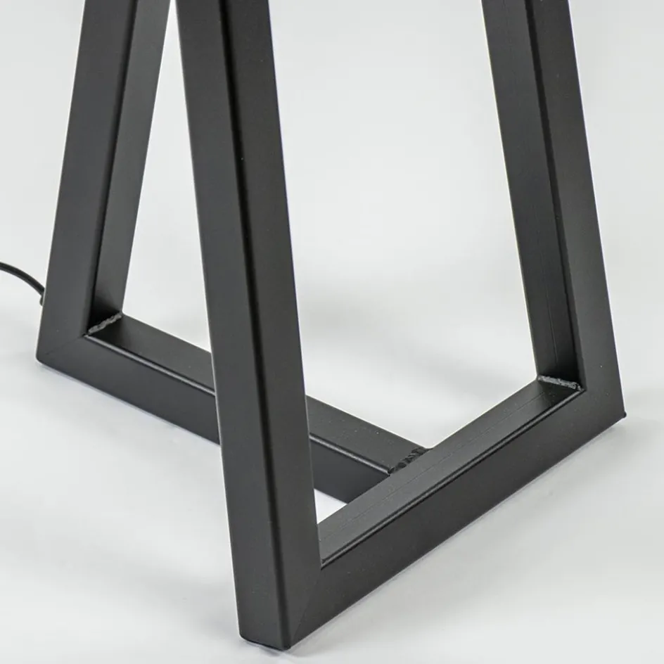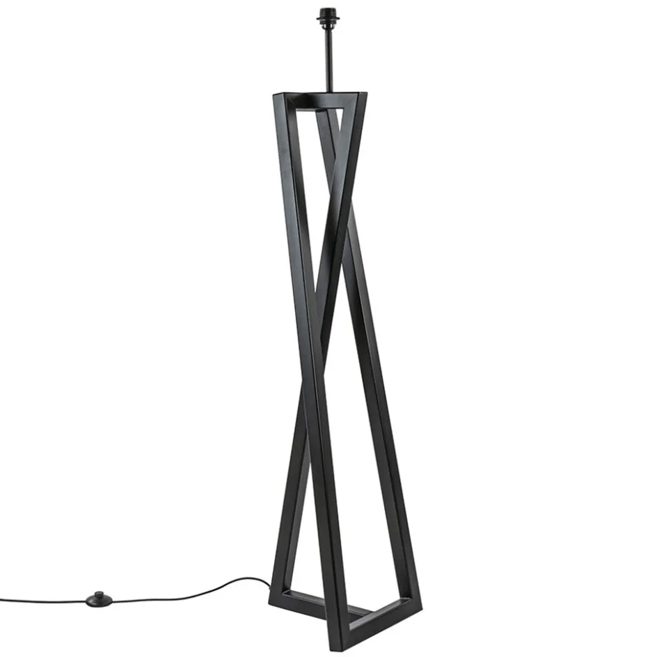 Een stoere robuuste vloerlamp met een hoog design gehalte. Deze vloerlamp is volledig vervaardigd van metaal en door echte ambacht gemaakt op Nederlandse bodem. Het metalen frame heeft een strakke afwerking en is voorzien van een mat zwarte finish. De staande lamp is voorzien van een zwart snoer met een lengte van 180 cm, de schakelaar bevindt zich op 45 cm in het snoer. De design lamp wordt geleverd zonder kap, zo kunt u de lamp zelf samenstellen zoals u wenst.