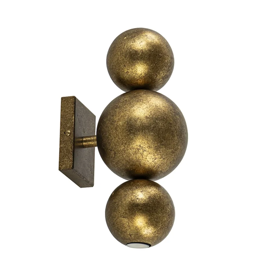 Klein van stuk maar groots in effect. Deze design wandlamp zorgt voor een sfeervol effect in de ruimte. De wandlamp bestaat uit 3 metalen bollen die zijn bevestigd op een wandplaat. De bovenste en onderste bol zijn voorzien van een E14 lichtpunt inclusief LED lichtbron. De wandlamp functioneert dan ook als een up en downlighter. Ideaal voor in een hal, woonkamer of slaapkamer. De wandlamp is volledig gemaakt van metaal en uitgevoerd in het ambachtelijk brons wat een chique en robuuste uitstraling geeft. De wandlamp is niet voorzien van een snoer.