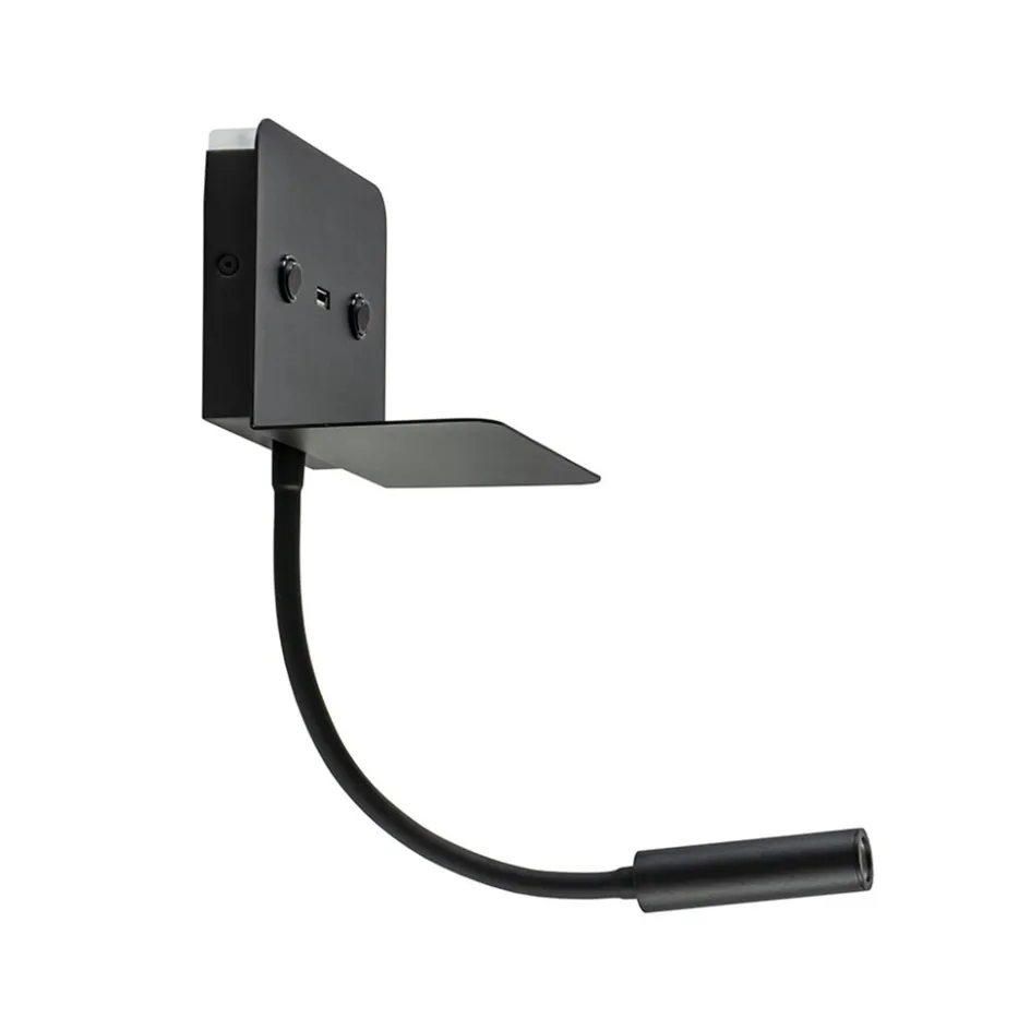 Deze multifunctionele wandlamp mag in uw woning niet ontbreken. De moderne wandlamp is de perfecte toevoeging voor uw slaapkamer. Voorzien van twee soorten verlichting, een plankje en een USB aansluiting, ideaal voor het opladen van uw telefoon. Bovenop de bevestiging is de wandlamp afgewerkt met geïntegreerd LED welke voor sfeervolle indirecte verlichting zorgt. Daarnaast hangt er onder het plankje een spot met een verstelbare arm welke mooi kan dienen als leeslamp. De beide lampen zijn los van elkaar te bedienen door middel van de twee schakelaars op de wandlamp. De perfecte bedlamp dus.