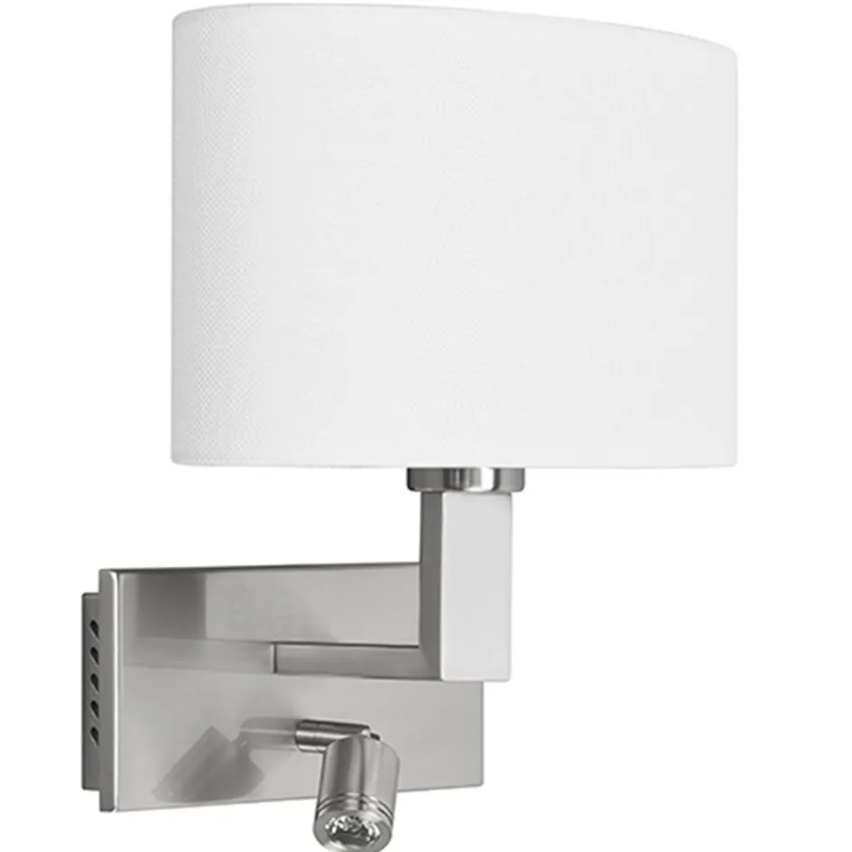 Deze fraaie wandlamp uit de serie New Oval met creme ovale kap is geschikt voor gebruik in verschillende ruimtes zowel strak als romantisch. Hij heeft een extra leeslamp op de wandplaat. De leeslamp is verstelbaar/draaibaar. Wandlamp en leeslamp zijn te bedienen via aparte schakelaars die zich bevinden aan de onderkant van de wandbevestiging.