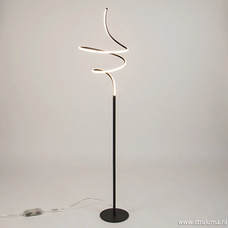 Zwarte krul vloerlamp LED dimbaar>Straluma Online